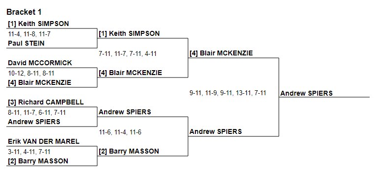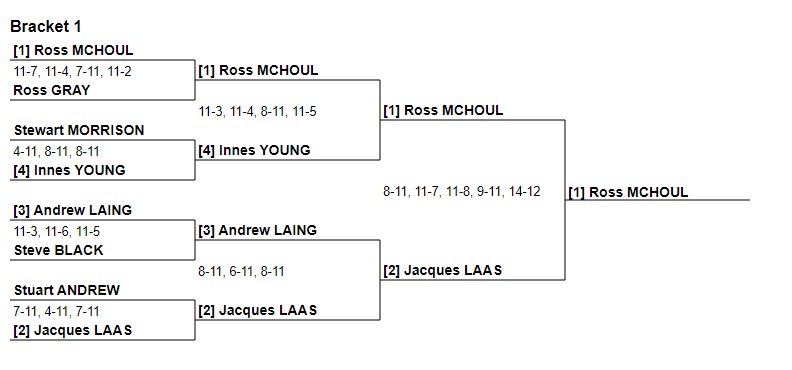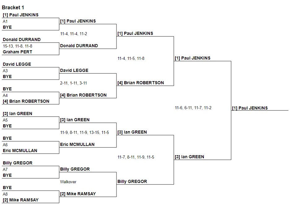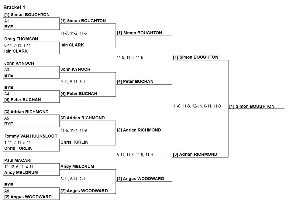 Alison Thomson was Ladies Champion, while Dougie Kempsell was men’s finalist. Senga Macfie, now representing Abercorn but long regarded as an ESC fixture comfortably exceeded her 5th seeding by reaching the Ladies final, and Edith Mackenzie was 7th. Rory Richmond was 6th in the men’s competition, beating his nemesis Kyle Penman en route. Full draw details are available here.