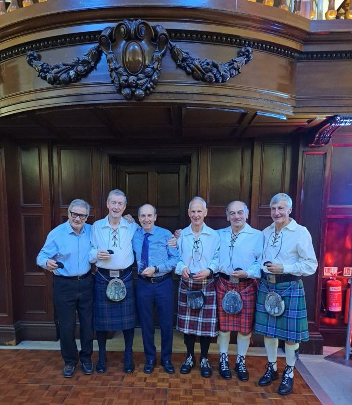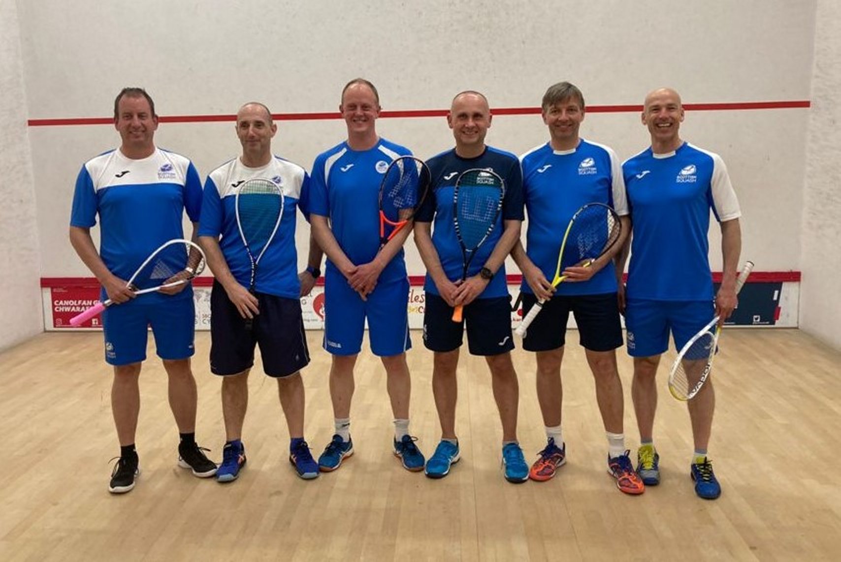 Aberdeen Squash and Racketball Club were the hosts of the 2023 edition of this event, held from March 3rd to March 5th. ESC had an extraordinarily successful tournament, providing both finalists in the Over 35 and Over 50 competitions, the winner of the Over 55 and Runner-Up in the Over 45 events. We also had losing semi-finalists in the Over 45 and Over 70 events. The photo below shows the six finalists – just Colin Cruickshank and Barry Masson missing the photocall. Many thanks to Adrian and Simon for the photo and reports, and the SportyHQ draws are included in the gallery.