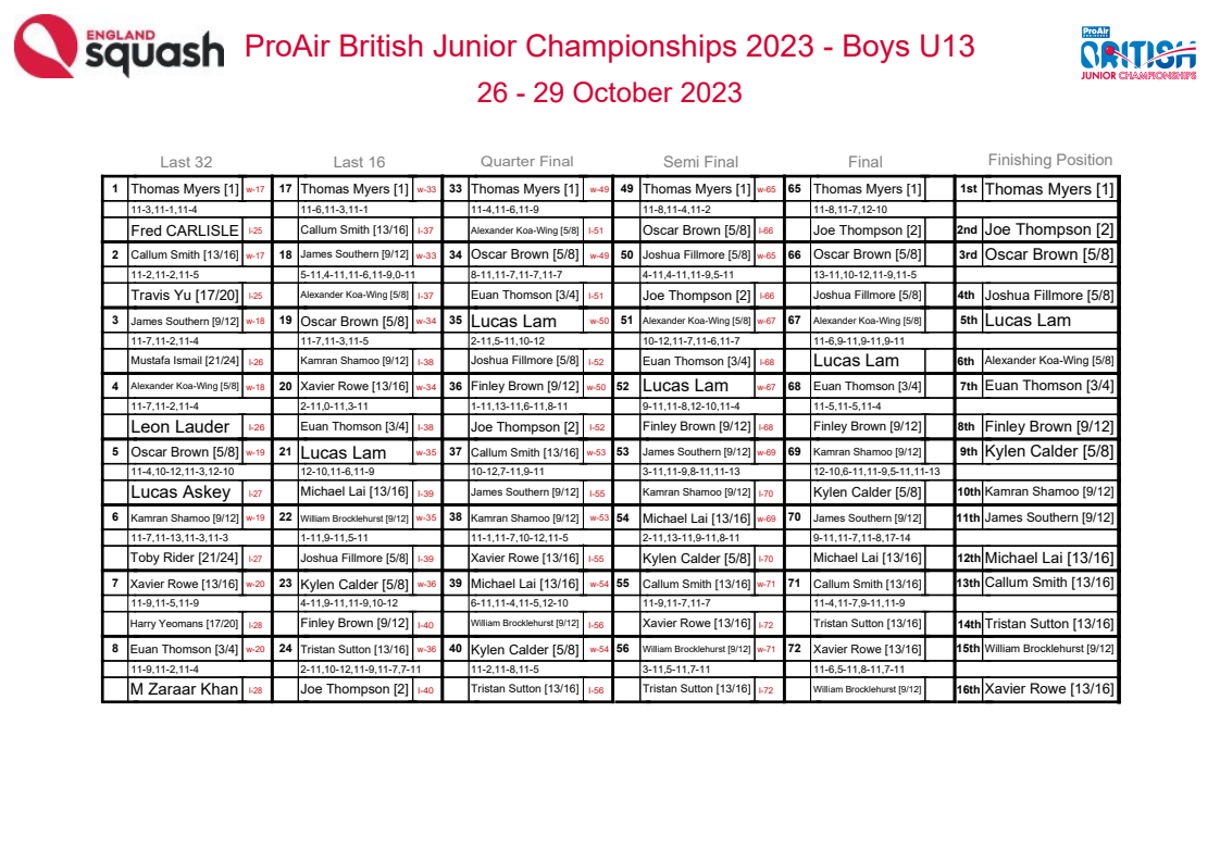 Thomas Myers showed that he truly is ‘one to watch’ by becoming the first Scottish male player to win any age group at the BJC’s since Peter Nicol in 1992. Thomas won the U13 as No 1 seed without dropping a game. Final day report here. Read more about Thomas here, and we’ve added a short slideshow which he richly deserves.
