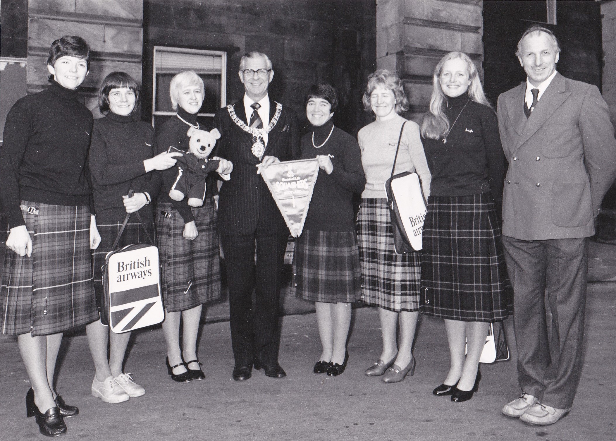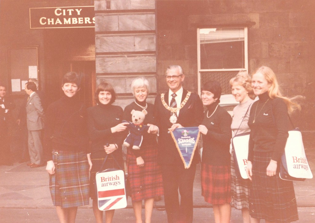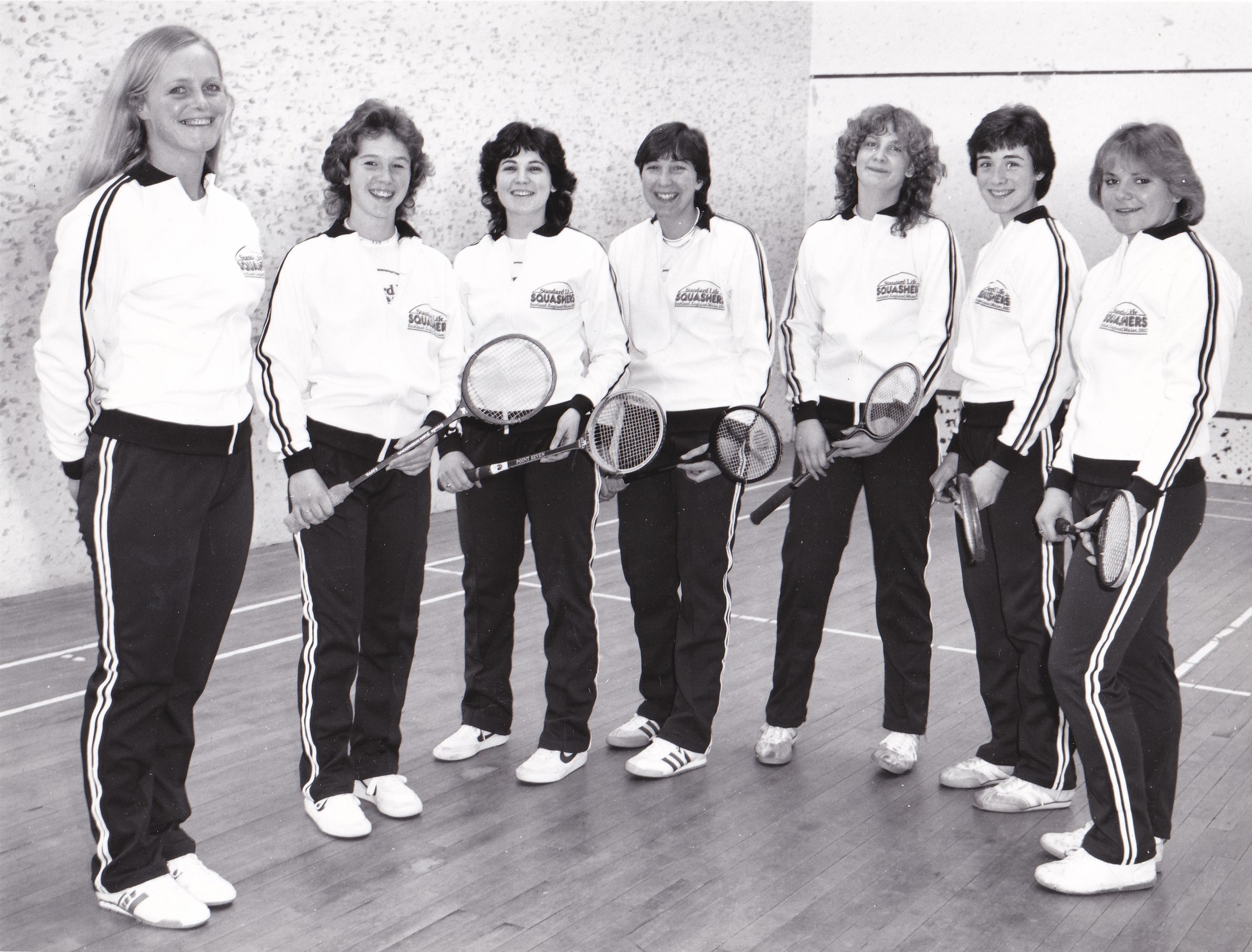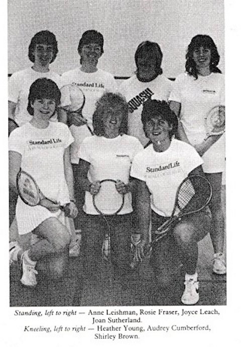 The 1982 squad featured six new faces – Shirley Brown, Audrey Cumberford, Joyce Leach, Audrey Dow, Ann Leishman and Jennifer James. No fewer than nine squash venues were visited, along with social visits and even a date with Macbeth at Stratford-upon-Avon.